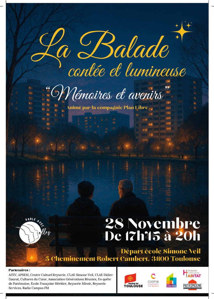 L'association "Parle avec Elles et ses partenaires", vous invitent à participer à la Balade Contée et Lumineuse sur le thème "Mémoires et Avenirs".